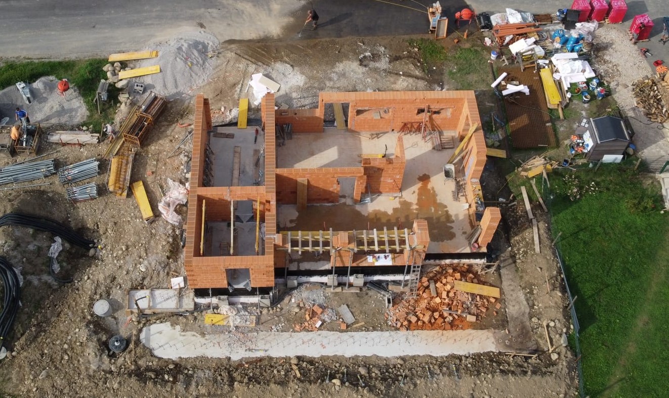 Bei einem Rohbau in Ziegel werden die tragenden Wände aus keramischen Ton-Ziegeln aufgebaut. In den meisten Fällen werden die zusätzlichen Elemente, wie Decke oder Fundament, aus Stahlbeton ausgeführt.